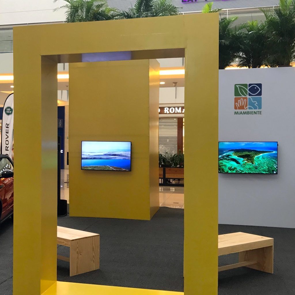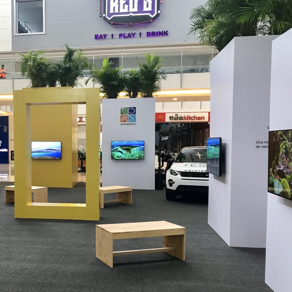 El montaje se inspiraba en los bosques de la selva panameña, a través de grande columnas con vegetación en la cima, a las cuales agregamos sonido ambiente de la selva caribeña. Así, el visitante ingresaba a un espacio estimulante, que lo abstraía del entorno comercial.